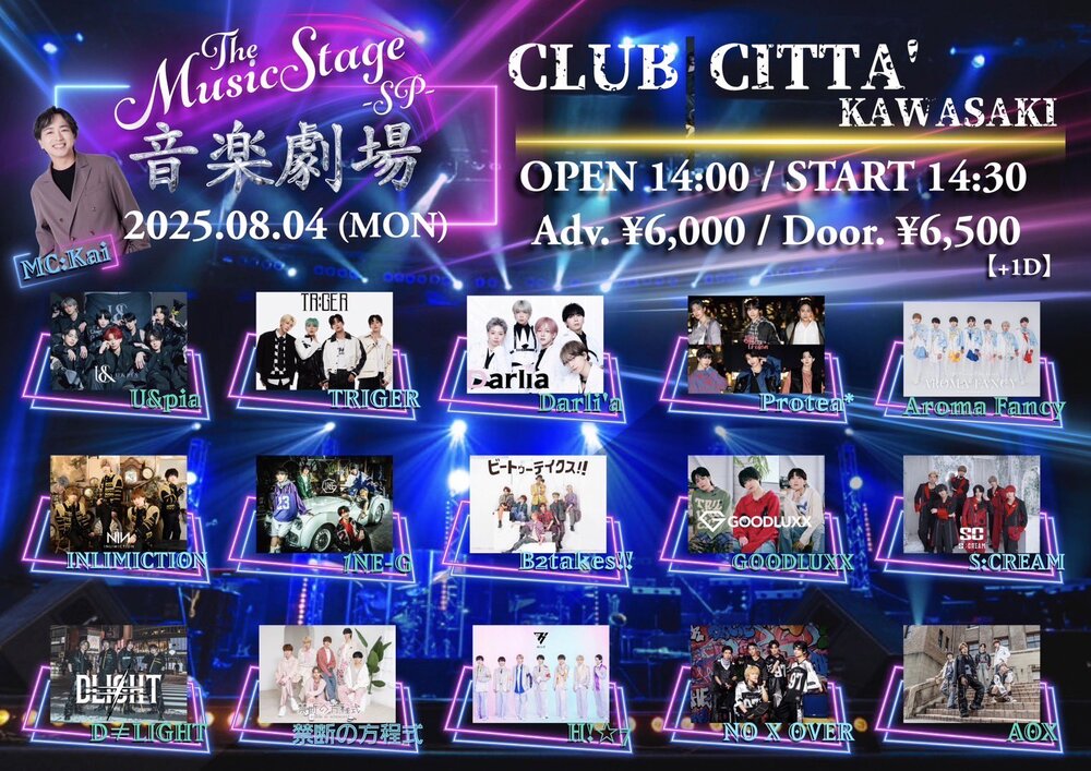 音楽劇場-SP- SCHEDULE 2025/08/04(月) クラブチッタ川崎 "音楽劇場-SP-" ■日程 8/4(月) ■会場 クラブチッタ川崎 ■時間 OPEN/START 14:00/14:30 ■チケット情報 前売り¥6,000+1D 当日券¥6,500+1D チケットサイト URLをコピーする 報告する