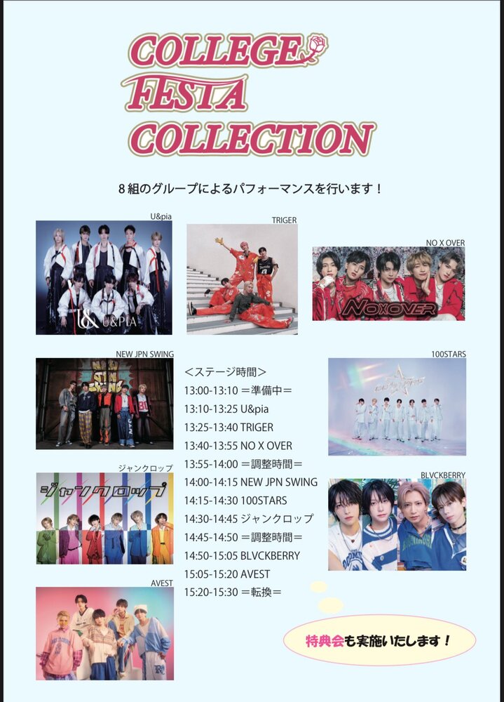 カレッジフェスタコレクション LIVE FES SCHEDULE 2025/11/01(土) 学習院大学 目白キャンパス 【出演イベント情報】📢 カレッジフェスタコレクション LIVE FESに出演します✨️ 学習院大学 桜凛祭 11月1日 13時00分〜15時30分 メインステージで実施 (雨天時も同様) 観覧無料です‼️ ※会場の混雑状況によっては整理券制にする可能性もございます。 特典会実施します! 16時00分〜17時30分 南3号館て実施予定です。 URLをコピーする 報告する