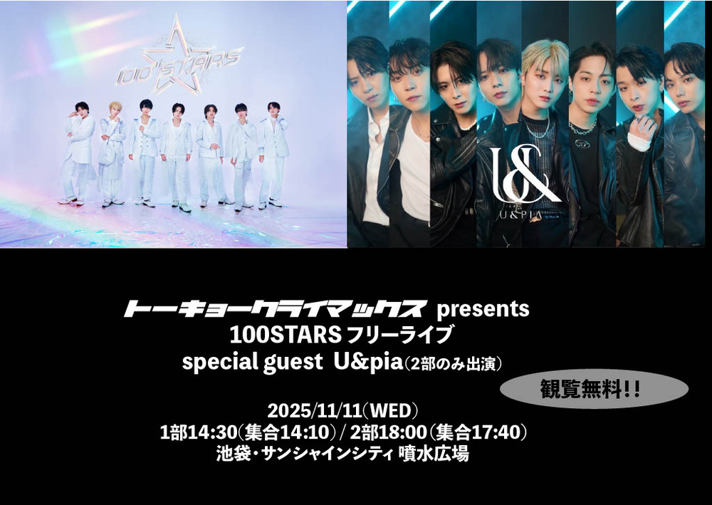 "トーキョークライマックス presents 100STARSフリーイベント special guest U&pia"